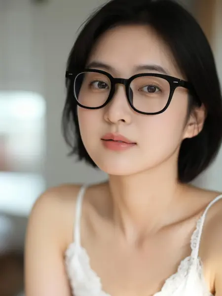 3. (Private photo shoot, wearing an exquisite hair accessory and eyeglass frames)