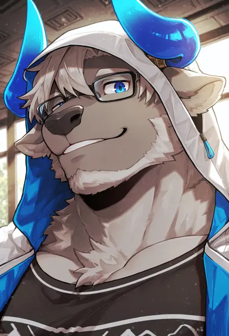 将蓝色眼睛/蓝色角替换为 'white eyes, white horns' 以呈现其替代外观