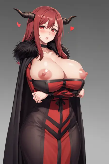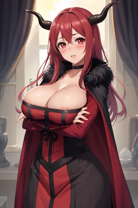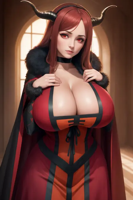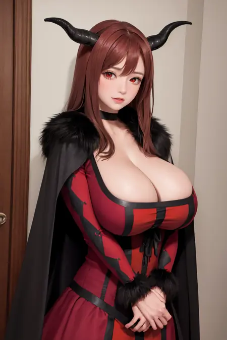 maou,角,项圈,连衣裙,胸脯,毛皮镶边,斗篷