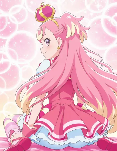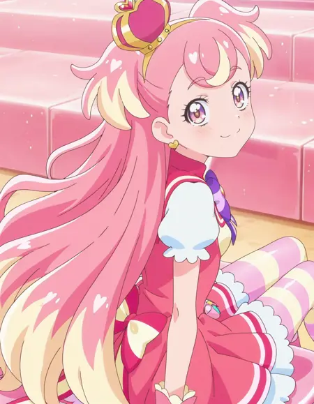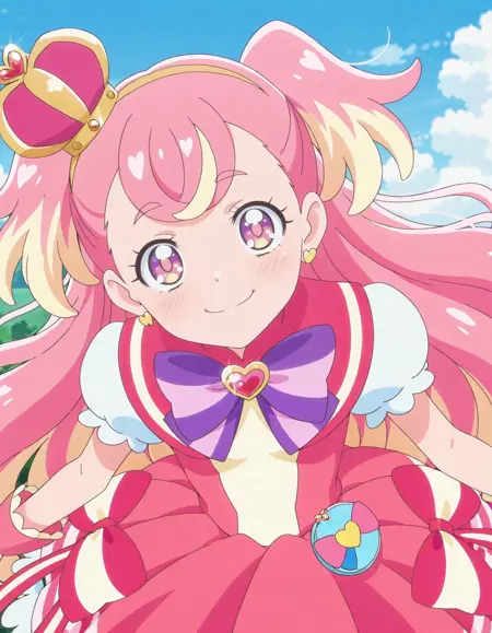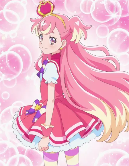 애니메이션 스크린캡, 솔로, 1소녀, 큐어원더풀, 원더풀 복장, 보라색 리본lora:curewonderful_IL:0.8 고해상도, 놀라운 품질, 최고 품질, 매우 미적, 걸작, absurdres,