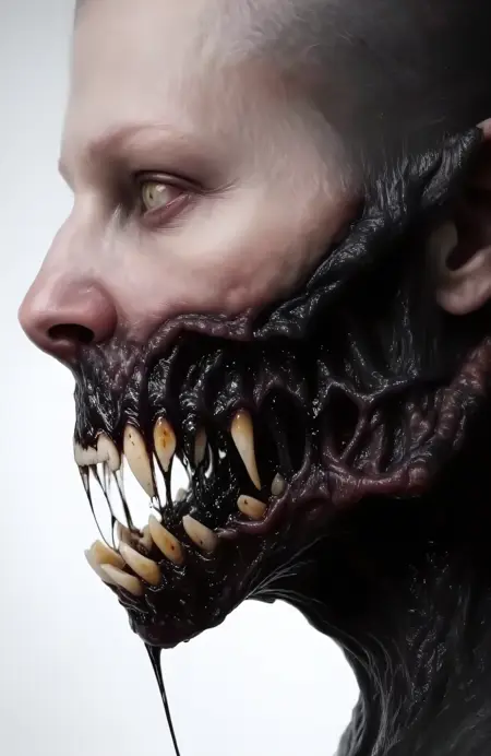 如果要求,它能且确实会产生更加离奇扭曲的结果。我并不清楚人们会如何定义“恐怖”、“怪异”之类的东西,因为我对这类概念没有设定任何界限或衡量标准。许多图像取自经典恐怖片,也有一些来自新片,很多属于小众作品,同时还包含艺术性、抽象、生物朋克和环境类图像。