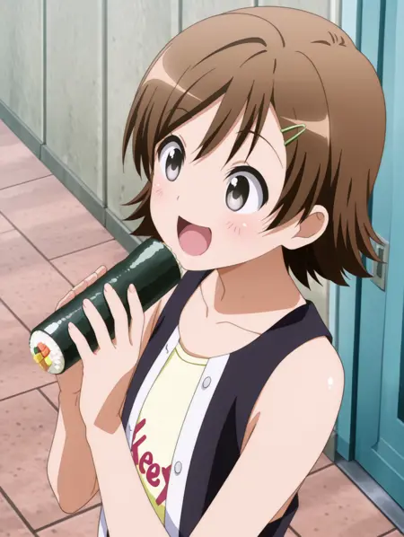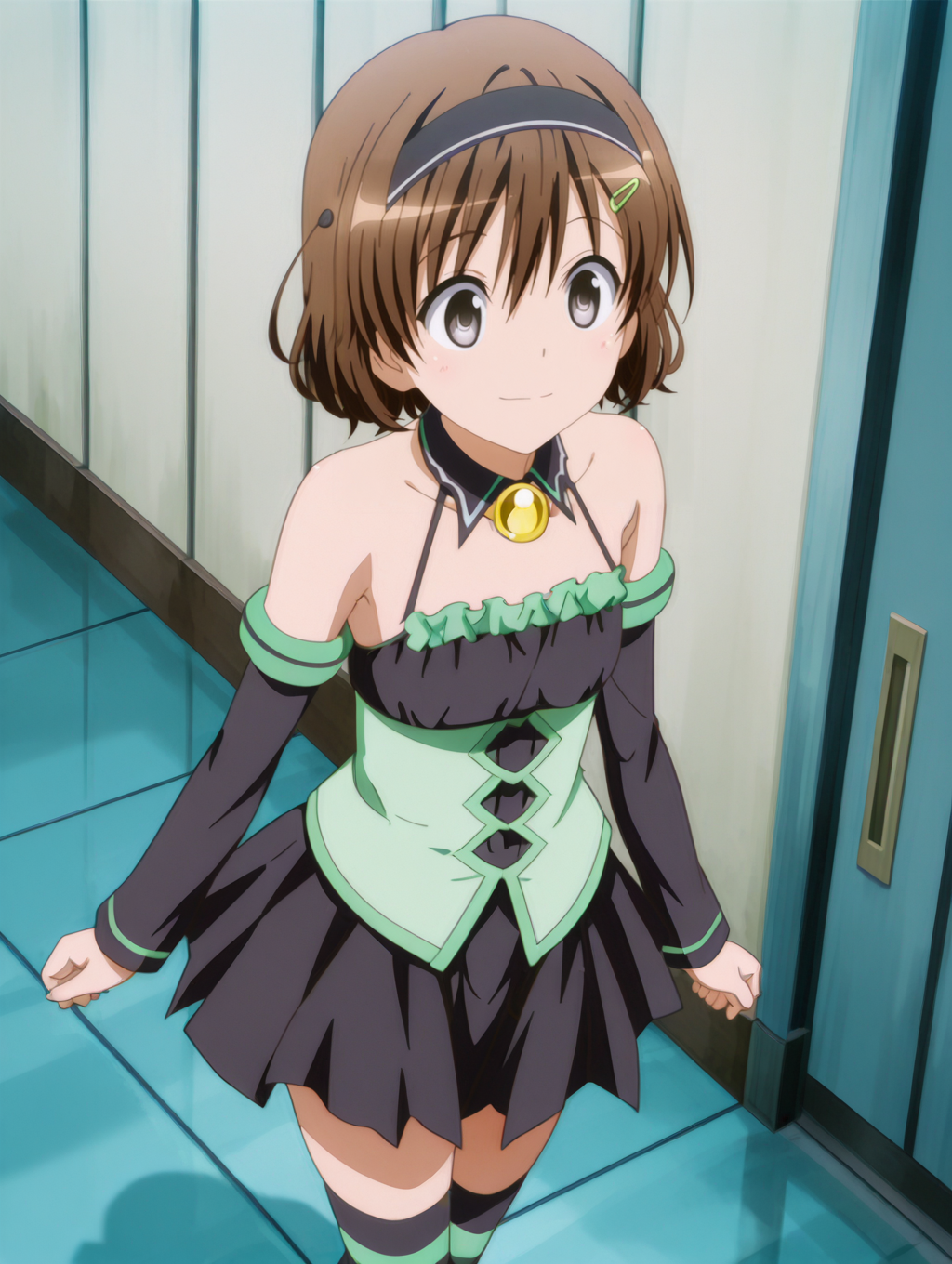 일반: 갈색 머리, 단발, 회색 눈, 작은 가슴, 헤어클립