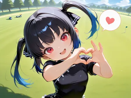 若不加任何设定,默认会生成黑发双马尾配发带,长度偏向长发或短发。只需加入你特别在意的标签即可。