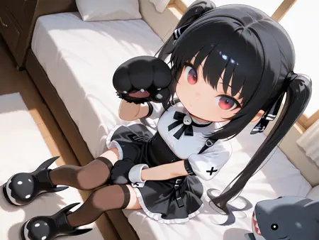 我特意只保留了白色边沿的女仆帽元素,如果将goth fashion替换为maid,就能穿上普通女仆服。