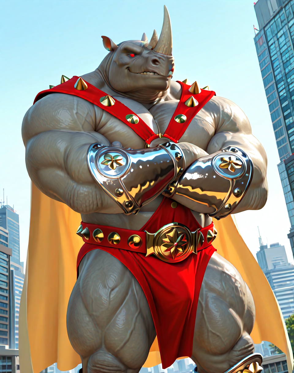이 LoRA용 프롬프트는 (Beastiamorph Rhino, muscular, rhino, )입니다.