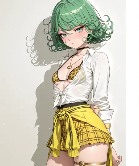 skirt, thighs, pleated skirt, miniskirt, thigh strap, plaid skirt, microskirt, yellow skirt, clothes around waist, checkered skirt, jacket around waist,