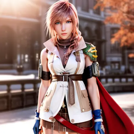 This model generates a likeness of the character Lightning (Claire) Farron from the Final Fantasy XIII video game.