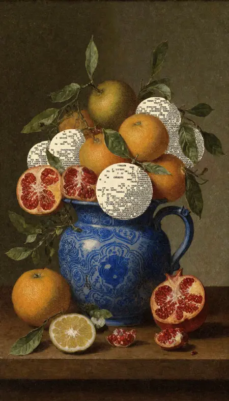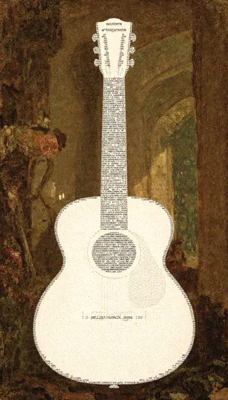 背景は[油絵/ビンテージ写真/アニメ/白黒]で、黒いテキストで満たされた白い対象と対比しています。