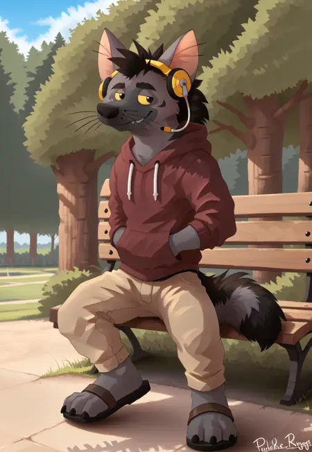 프롬프트: 하야, 퓨리, 남성, 아르드월프, 검은 줄무늬가 있는 어두운 회색 털, 수염이 있는 길고 좁은 코, 노란색 공막