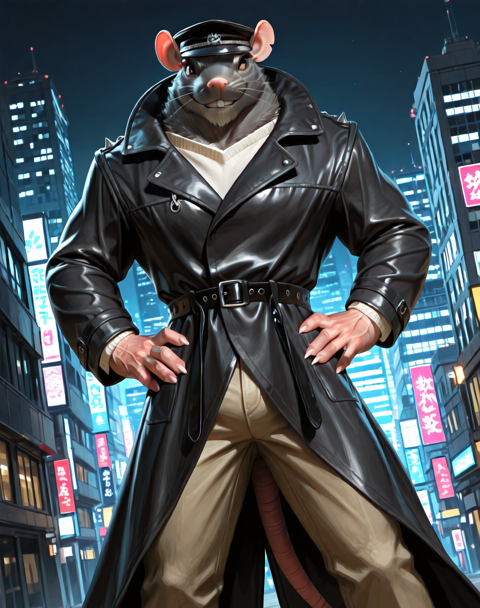 该LoRA的提示词为(Intergang刺杀者,肌肉发达,鼠)。
