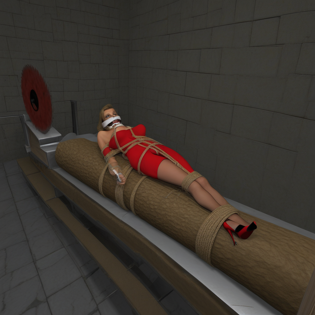 Imminent doom, Conveyor belt, bondage, tied up, circular saw
