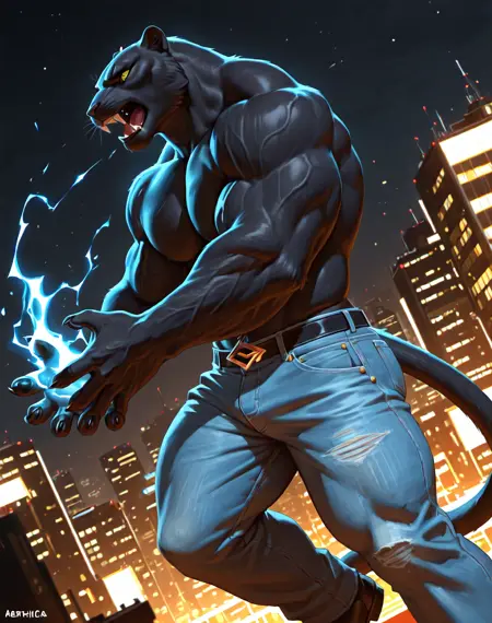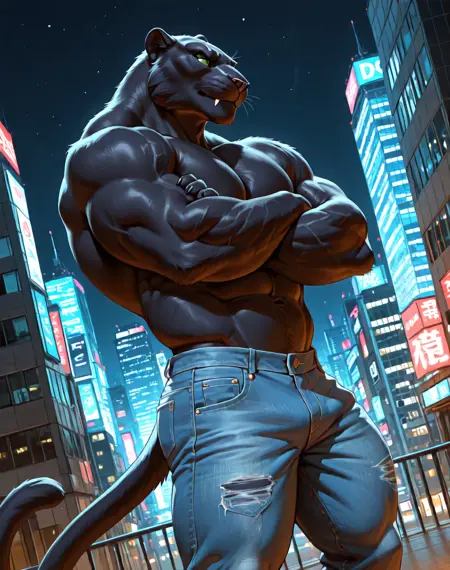 このLoRA向けのプロンプトは以下の通りです:(インターガング・スラッシャー、筋肉質、パンサー)