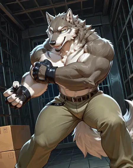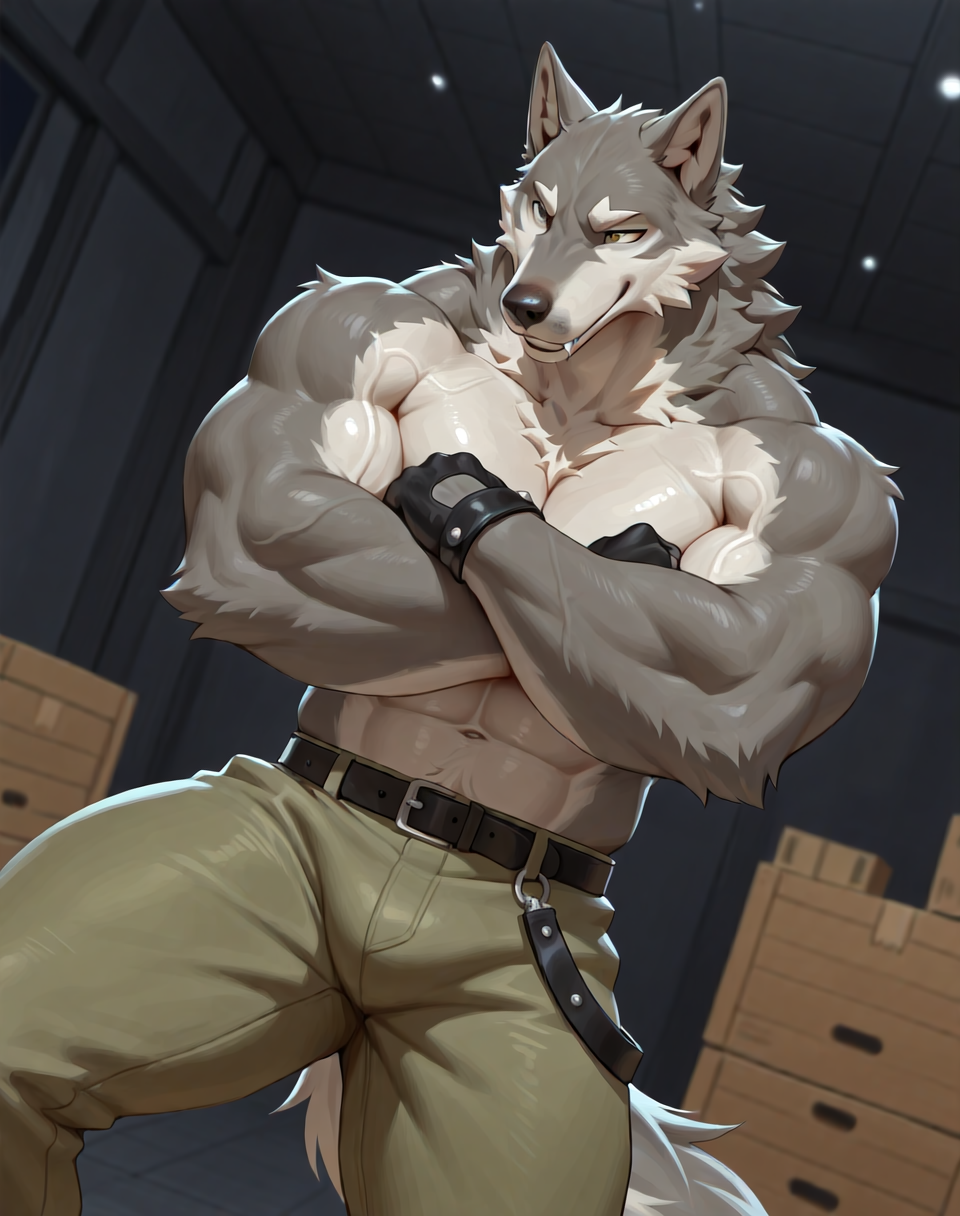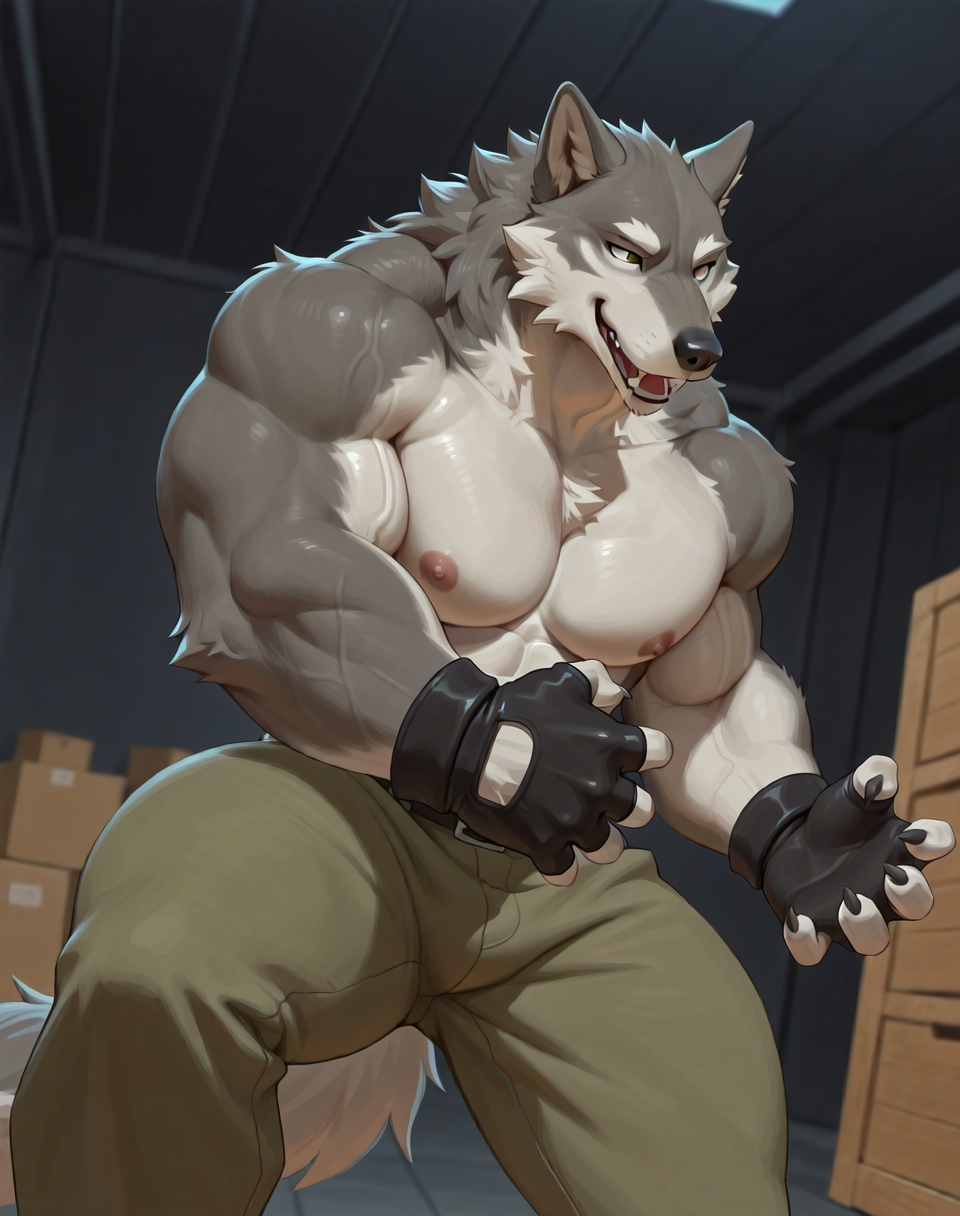 このLoRA向けのプロンプトは(カイル・アボット、筋肉質、狼)です。