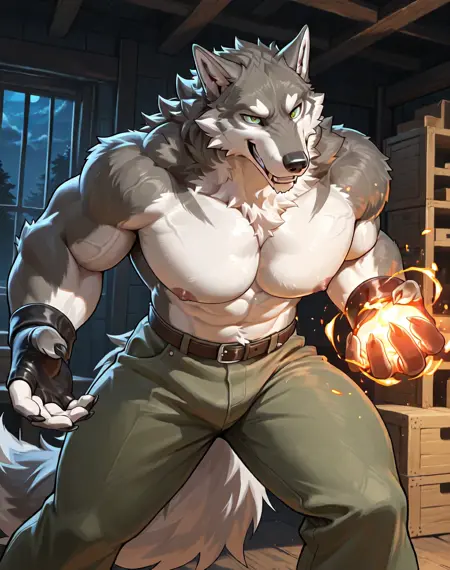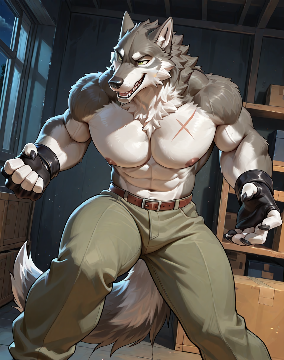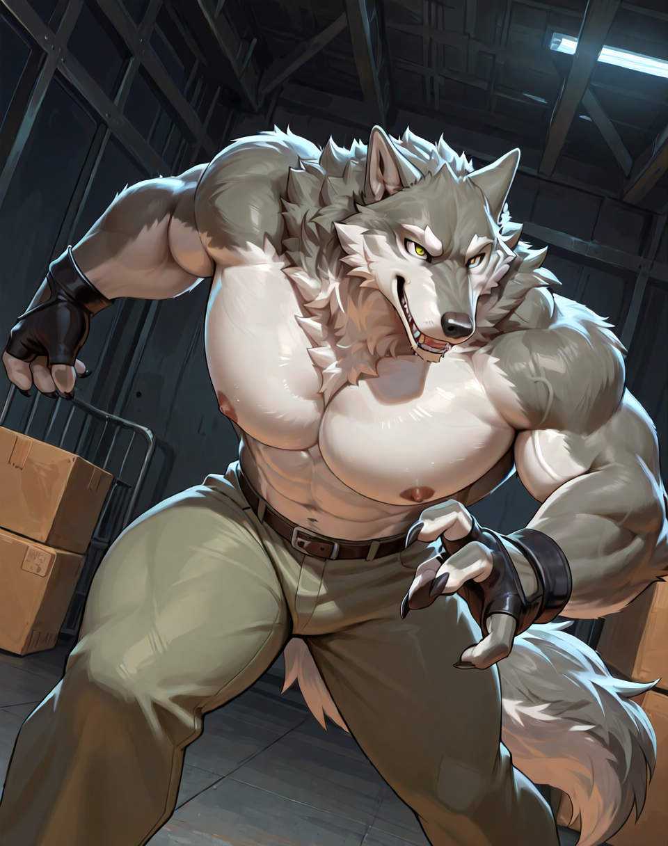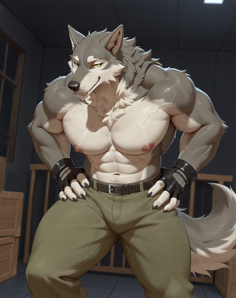 このLoRA向けのプロンプトは(カイル・アボット、筋肉質、狼)です。