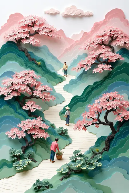 This LoRA model focuses on Chinese-style paper-cut landscape art, capable of generating delicate paper craftsmanship textures and Chinese landscape artistic conceptions, accurately presenting the charm of traditional aesthetics.