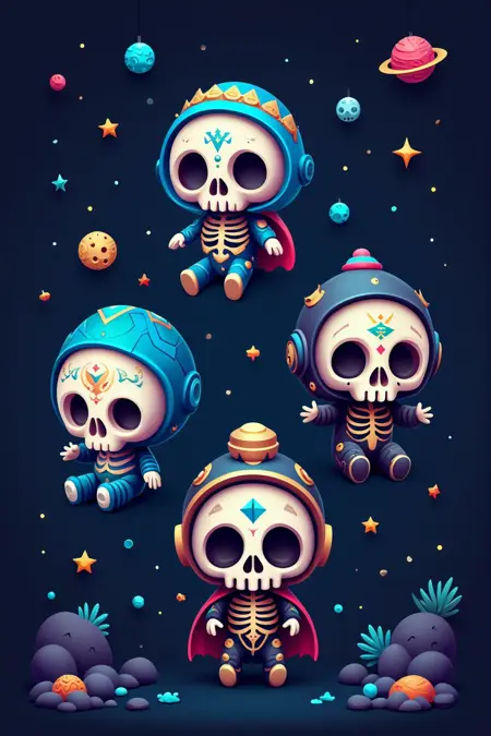 ベースプロンプト: スカルテーマのカートゥーンキャラクター