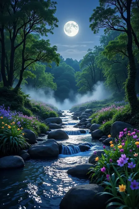 This LoRA model focuses on moonlit riverside scenery, accurately presenting elements such as fireflies, blooming flowers and streams, and restoring dreamlike natural landscapes.