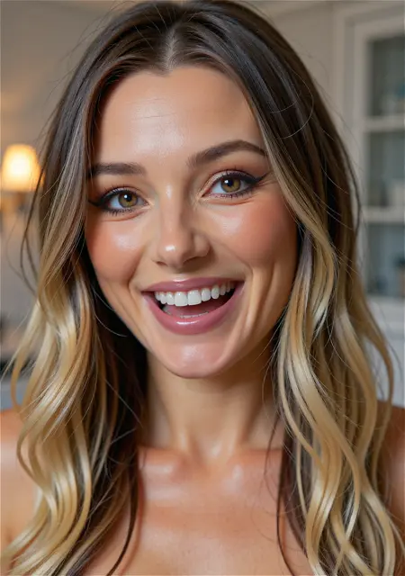 无需其他触发词,但训练提示中包含了两个关键特征,如果你想强化或增强这些特征:长棕色头发渐变至金色,引人注目的琥珀色眼睛