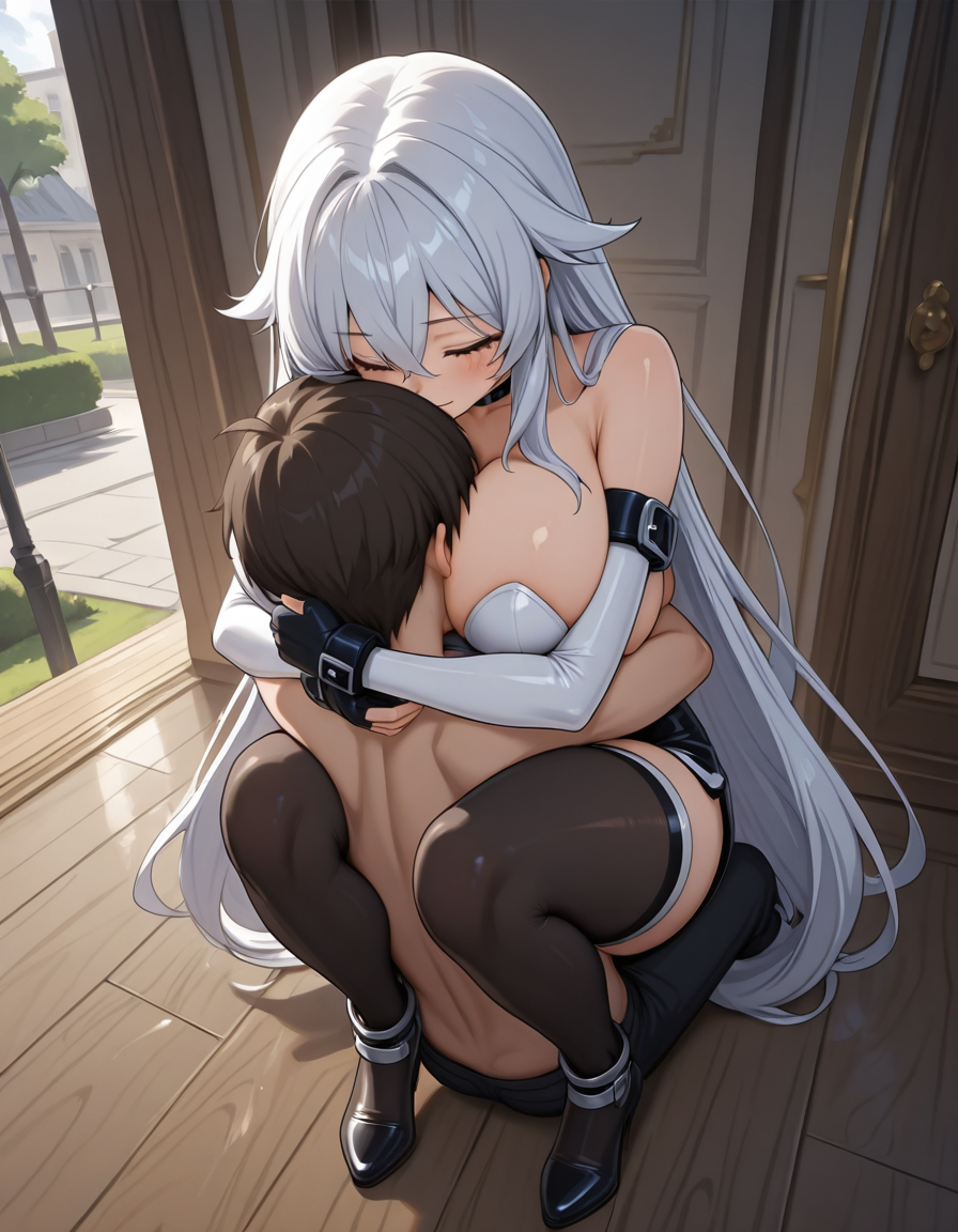 (Illustrious) face between breasts, tall woman 乳合わせ ハグ
