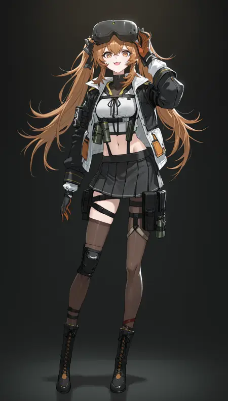 棕色眼睛,棕色头发,双马尾,头戴护目镜,