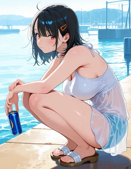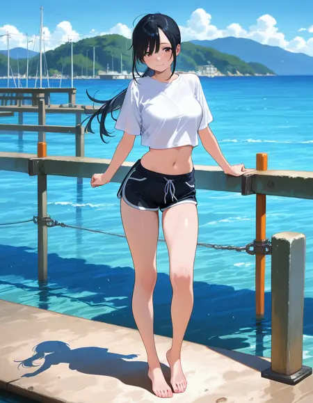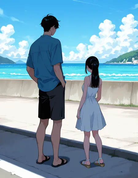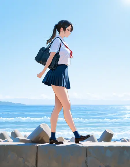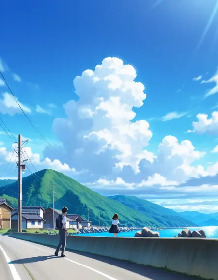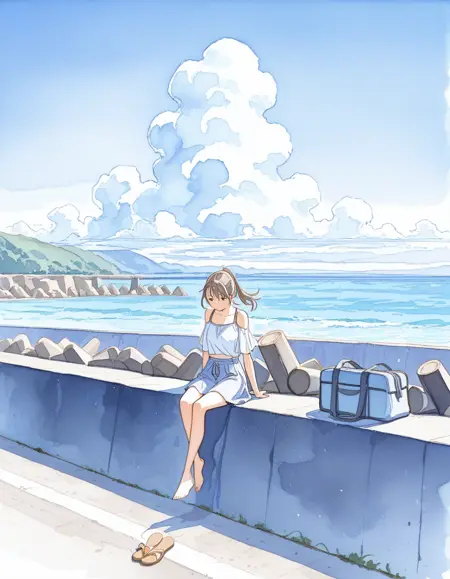 日本の防波堤や堤防がある海沿いの風景を再現するLoRAです。