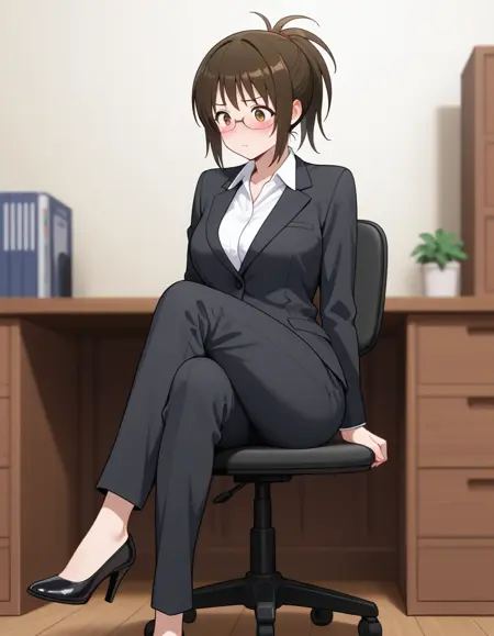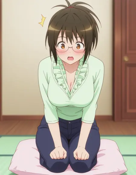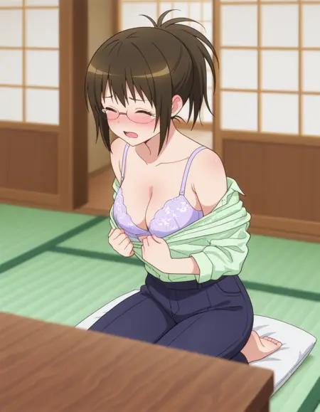 nitharutlr,短发,马尾,棕色头发,棕色眼睛,中等胸围,无框眼镜,
