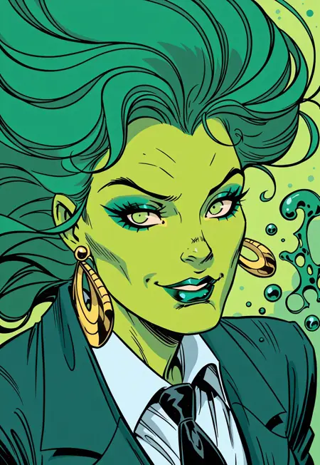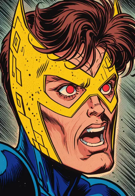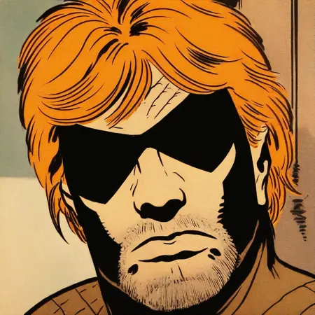 레트로 만화 스타일, 단순히 70년대가 아니라 80년대와 90년대 초반을 넘어서 00년대 일부도 혼합되며, 강력한 인킹 스타일이 포함되어야 함.