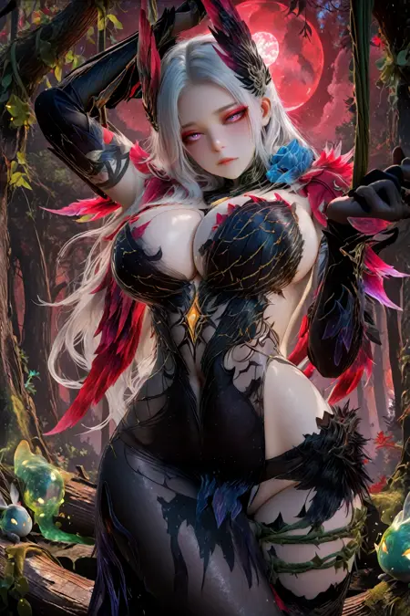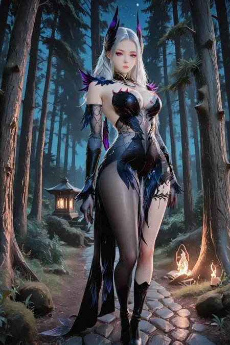 얼굴 트리거 단어(Facial trigger word)****: purple eyes,mole_under_eye,silver hair,long hair,feather hair ornament,