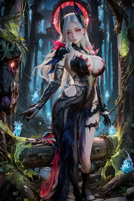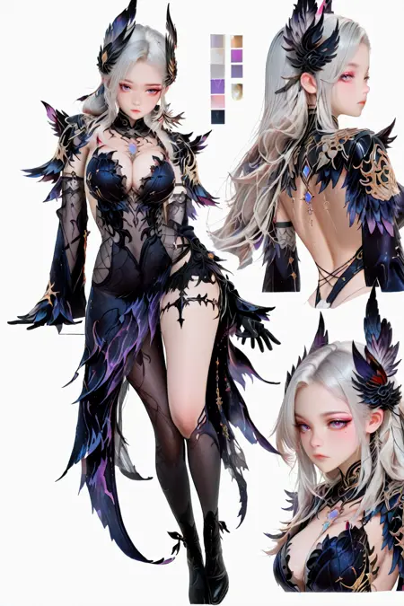 트리거 단어(Trigger word)****: Ji Yingying,breasts,black dress,gloves,backless dress,feather trim,single leg