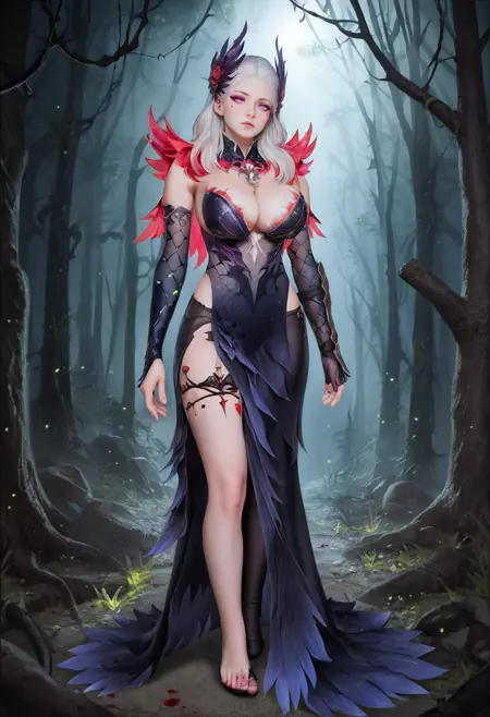 얼굴 트리거 단어(Facial trigger word)****: purple eyes,mole_under_eye,silver hair,long hair,feather hair ornament,