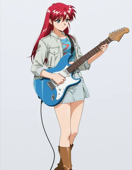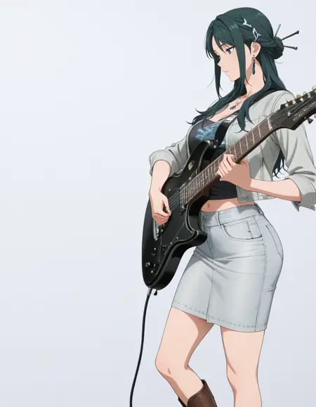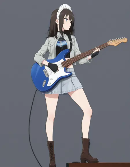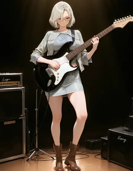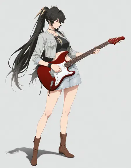 mai_gxt_denim,grey_jacket,midriff,grey_shirt,grey_skirt,boots,denim,brown footwear