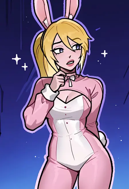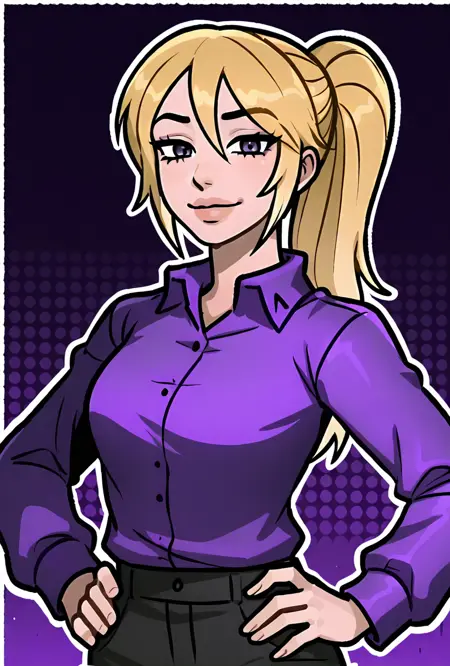 彼女の白い衣装と紫の衣装の両方が利用可能です