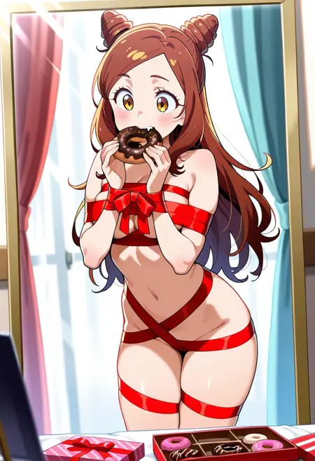 丝带束缚,红色丝带,裸体,胸部,肚脐