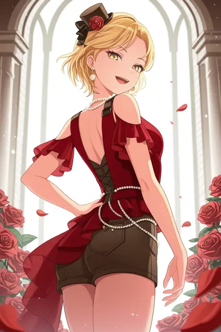 satoumasuki, 1girl, solo, blonde hair, skirt, short hair, jacket, navel, yellow eyes, midriff, looking at viewer, red jacket, black skirt, long skirt, open clothes, open jacket, shirt, black shirt, cslsk