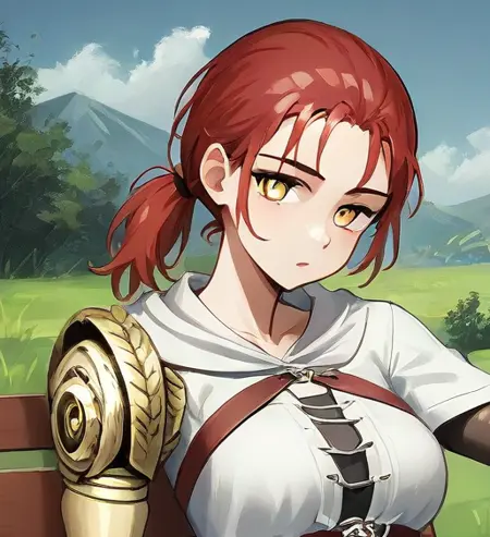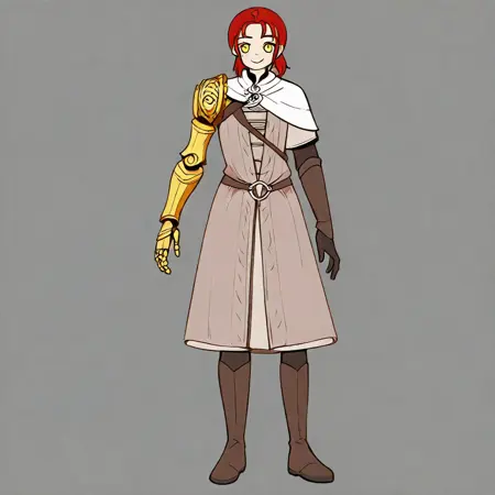Millicent needs some love too, so here's a model that attempts to achieve that, has prosthesis training, though needs to spsecify that there's only one mechanical arm to avoid making the two arms mechanicals, yellow eyes, red hair