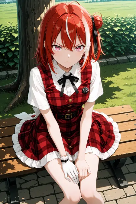 You'll probably, unfortunately, also have to tag plaid_dress and/or red_dress if you want the outfit to come through. Without either of these tags she seems to frequently end up in her underwear.