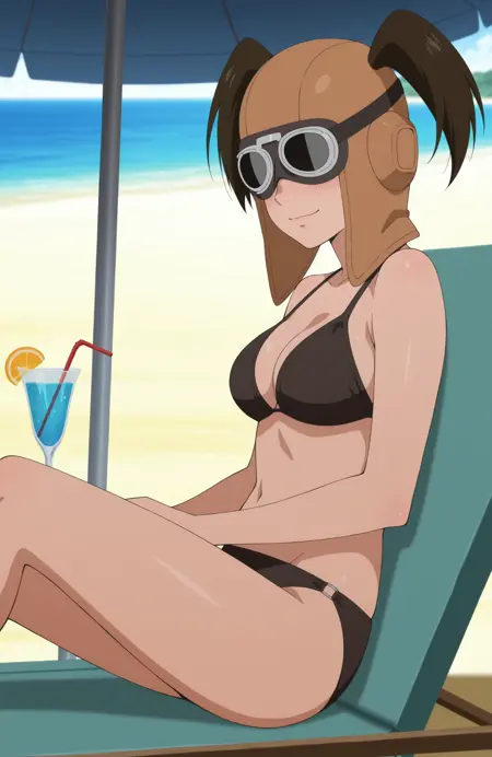 在原作中,她的眼睛从未被展示过,更不用说摘下她始终佩戴的飞行员帽后的发型了。因此,即使你在提示中强行让她摘下帽子并获得你想要的效果,那也完全不是哈里卡的真实面貌。需要澄清的是,和所有阿乌拉米一族一样,我们永远无法确定她的眼睛究竟长什么样。尽管如此,她依然非常可爱——看看那张漂亮的脸蛋吧!