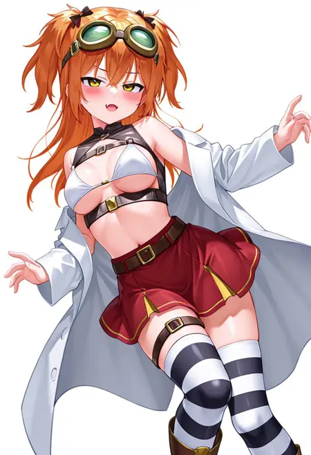 | 학습된 단어 | <lora:V1ct0r1a_3st4:1>복사됨! victoria_esta, yellow eyes, orange hair, long hair, twintails, messy hair, goggles on head, cute fang,복사됨! breastless clothes, white bikini top, single armstrap, belt, red skirt, single thigh strap, striped thighhighs, boots,복사됨! playboy bunny, bunny ears, brown choker, brown leotard, single armstrap, single thigh strap, single kneehigh boot, single ankle boot, bunny tail,복사됨! school uniform, serafuku, pleated skirt, bike shorts, kneehigh socks, shoes,복사됨! |