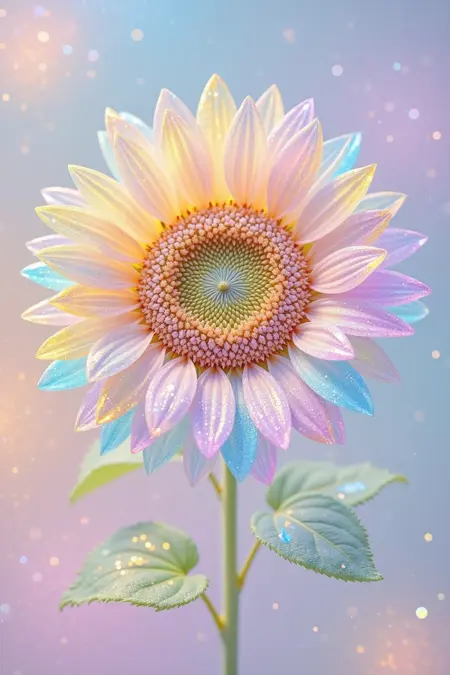 多彩的粉彩色调与闪烁效果,向日葵拥有全息花瓣,闪烁如星光,散发柔和光晕。