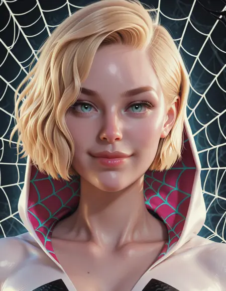 ILLUSTXL_STYLE_Naturalman2023_ownwaifu, 1girl, blonde hair, blue eyes, fishnet bodysuit, large breasts, city, cityscape, fishnet legwear, fishnets, looking at viewer, realistic, skyscraper, spider web print, short hair, cleavage, covered nipples, shiny, hood down, blurry background, lips, hand on hip, covered navel, eyebrow piercing, skin tight, toned, superhero, hooded bodysuit, night, abs, silk, hand on own hip, asymmetrical hair, impossible bodysuit, spider-gwen, gwen stacy, standing, cowboy shot, hand up, see-through, clothing cutout, multicolored clothes, curvy, impossible clothes, alternate breast size