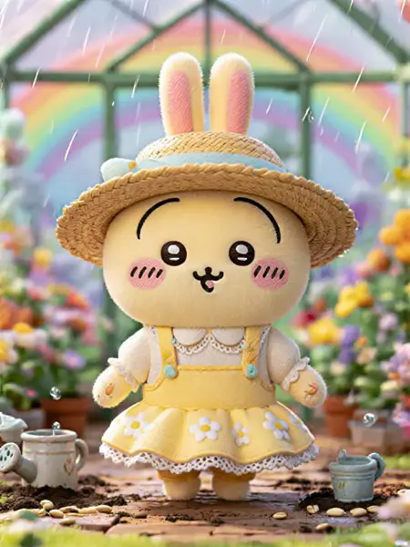 Trigger word: Usachi rabbit character, fairy tale dream atmosphere, soft and cute, Q-version 3D character, blind box trendy design, healing and cute style, cartoon and cute, chiikawa IP, Q-version anthropomorphic animal, rounded contour,