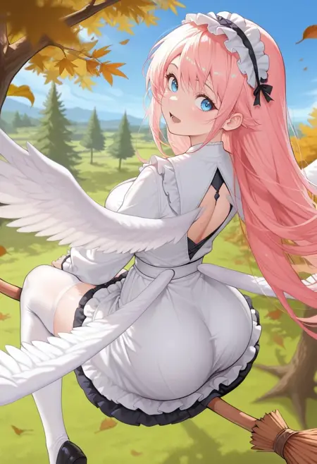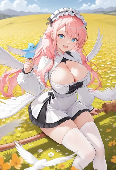 frilled hairband,cleavage cutout,white thighhighs,wings,
