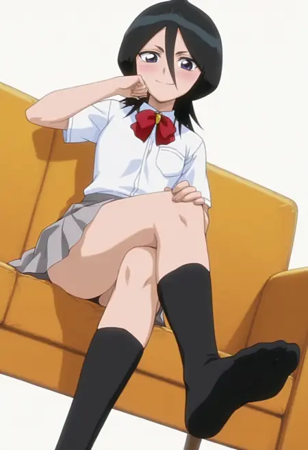 kuchiki rukia,purple eyes, black hair, medium hair , hair between eyes, two tone eyes