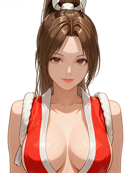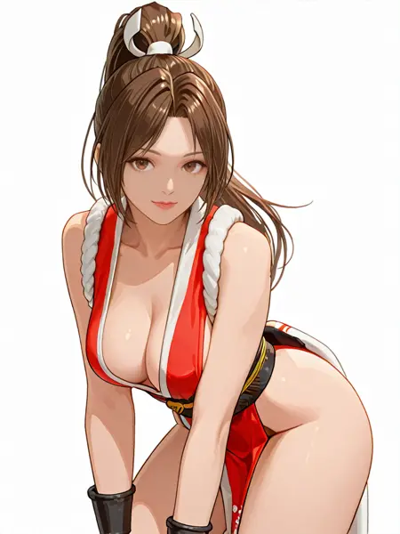 shiranui mai,brown hair,brown eyes,high ponytail,large breasts,rope,revealing clothes,