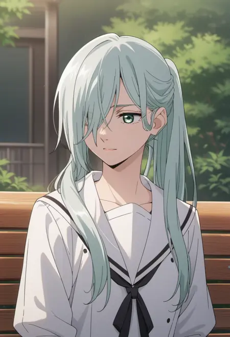 トリガー語: hoshina subaru、長い髪、灰色の髪、緑の目