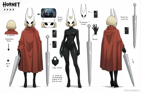 This LoRA has been trained using images of Hornet from Hollow Knight.
