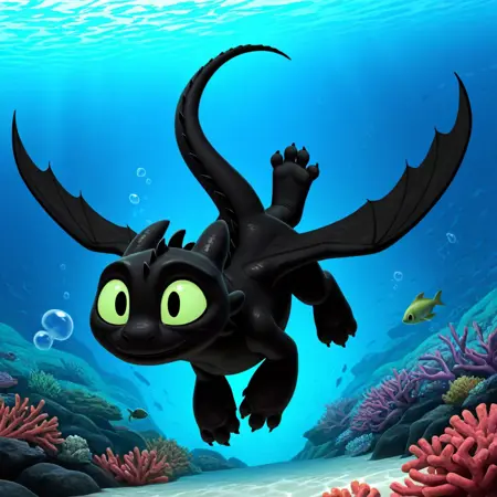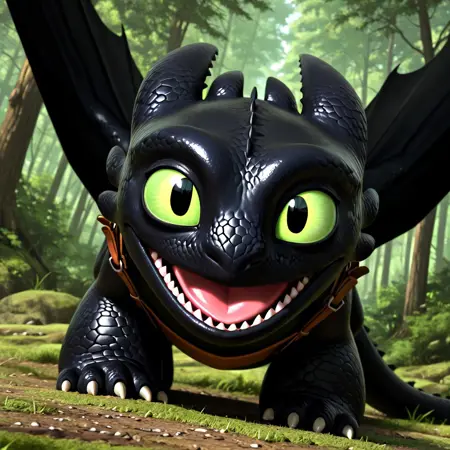 Toothle55, dragon, black body, black scales, claws, tail, wings, green sclera, black pupils