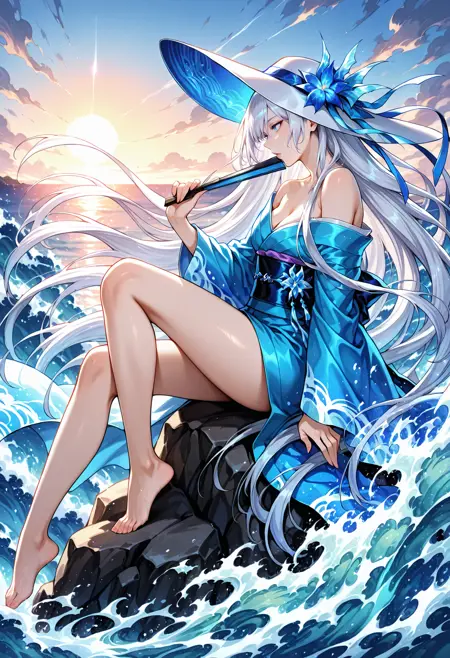 外观: 1个女孩,蓝眼睛,白发,长发,非常长的头发