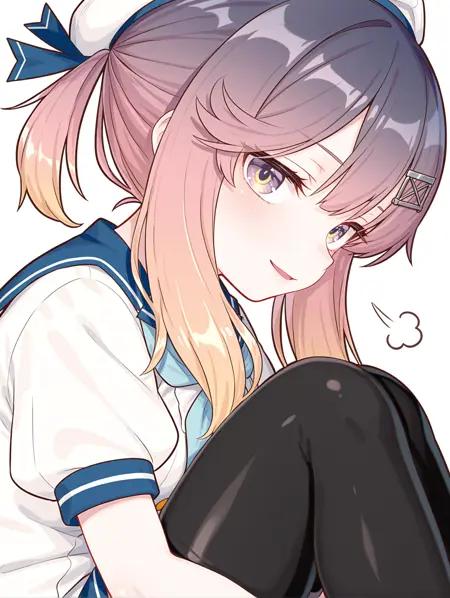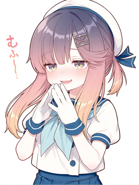 衣装 ・t_clothes,blue sailor collar,blue neckerchief,puffy short sleeves,white gloves,blue skirt,black_thighhighs,rudder footwear,
