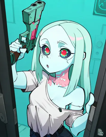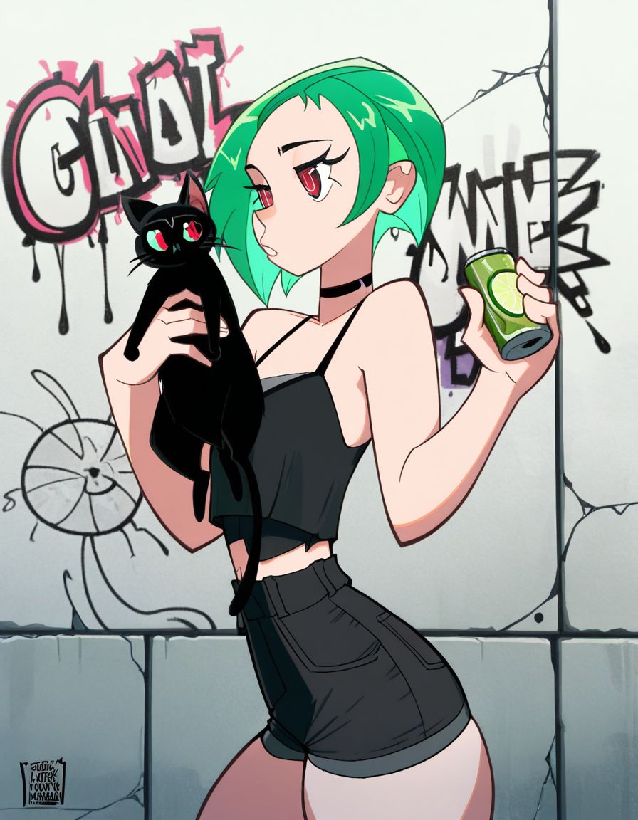在进一步探索超级变形风格的过程中,我尝试了一些不同的方法。这个LoRA同时使用了三位艺术家(dopedark、julianvillagtm、The pink pirate)的复合数据集进行训练,所选图像具有相似特征,旨在将它们融合进一个单独的LoRA中。